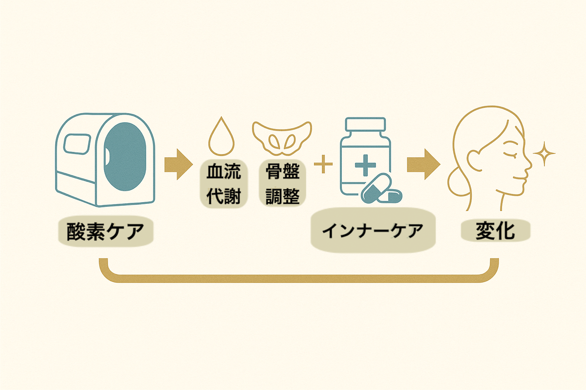 酸素 × 骨盤 × 腸活 × 血流 × 自律神経 × 美肌